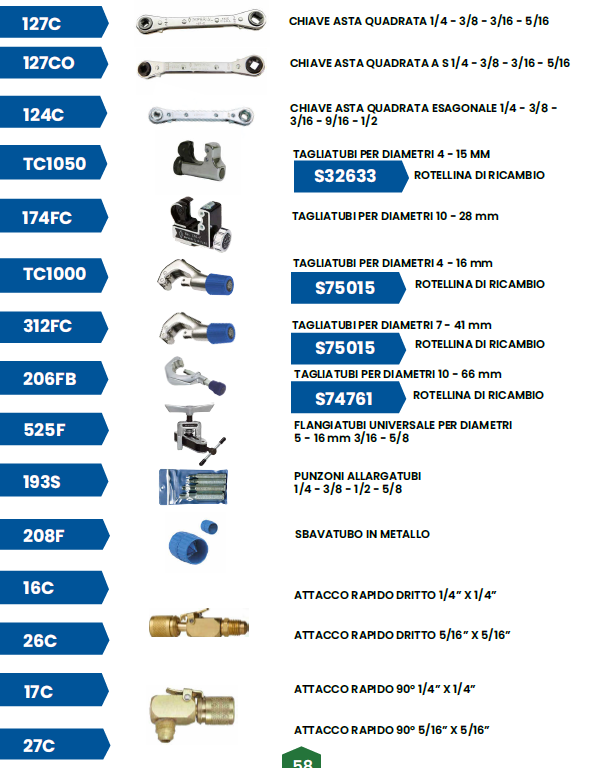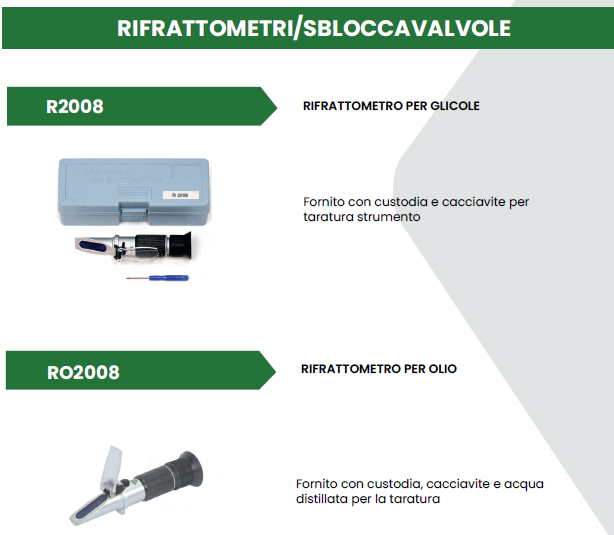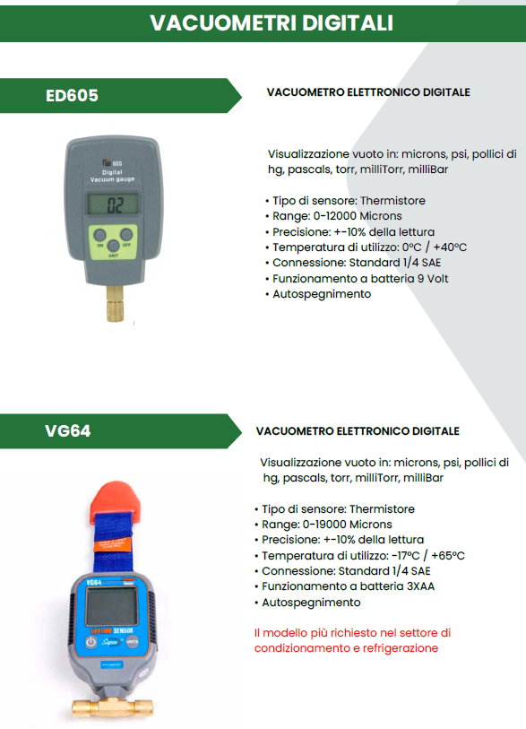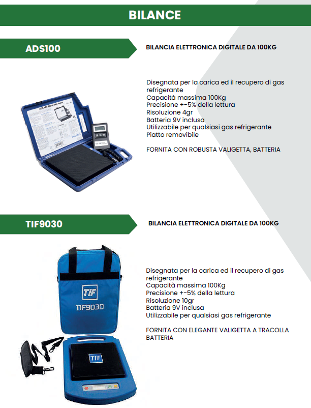 In questa sezione, vi presentiamo la nostra vasta selezione di Attrezzature, tra cui Gruppi Manometrici, Vacuometri, Bilance, Termometri, Attrezzature per Saldatura, Attrezzature per la Pulizia, Tarature e una varietà di Accessori Vari. Questi strumenti e dispositivi rappresentano strumenti fondamentali per la progettazione, l’installazione, la manutenzione e l’ottimizzazione dei sistemi di raffreddamento industriali.